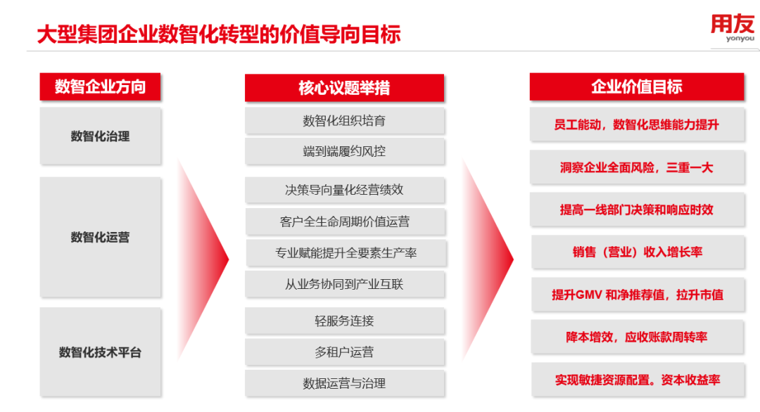 大型企業(yè)數(shù)智化轉(zhuǎn)型會面對各種聲音,但用友建議企業(yè)要回歸經(jīng)營本質(zhì),從底層的管理邏輯和業(yè)務(wù)邏輯出發(fā),定位自身所處的階段,打造與企業(yè)經(jīng)營管理相匹配的數(shù)智化平臺,從而實(shí)現(xiàn)價(jià)值創(chuàng)造。